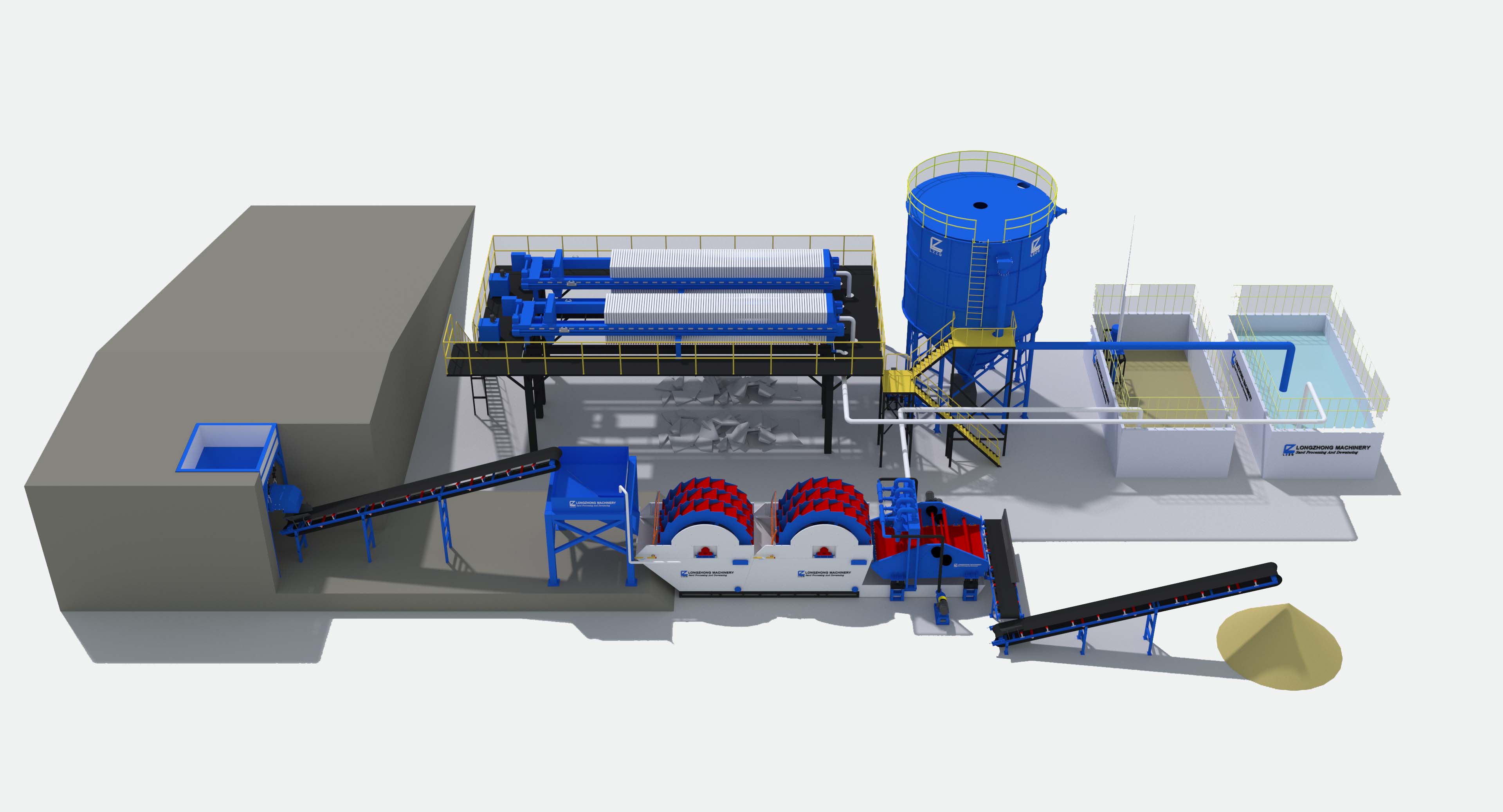 洗山土、尾礦污水零排放成套設備是隆中重工針對山土清洗、細沙回收、廢水選礦尾水凈化、固體廢棄物 干排等問題而研發(fā)推出的系統(tǒng)化解決方案,由砂石物料清洗設備(洗砂回收一體機、螺旋篩洗一體機)、細 沙回收設備、污泥濃縮罐、污泥壓濾機等成套設備組成。 該成套設備廣泛適用于金屬礦山、非金屬礦山、洗山土山砂、打樁泥漿、盾構渣土、垃圾焚燒爐渣處理、市政 疏通、河道清淤等作業(yè)中的物料清洗及尾料尾水的處理。